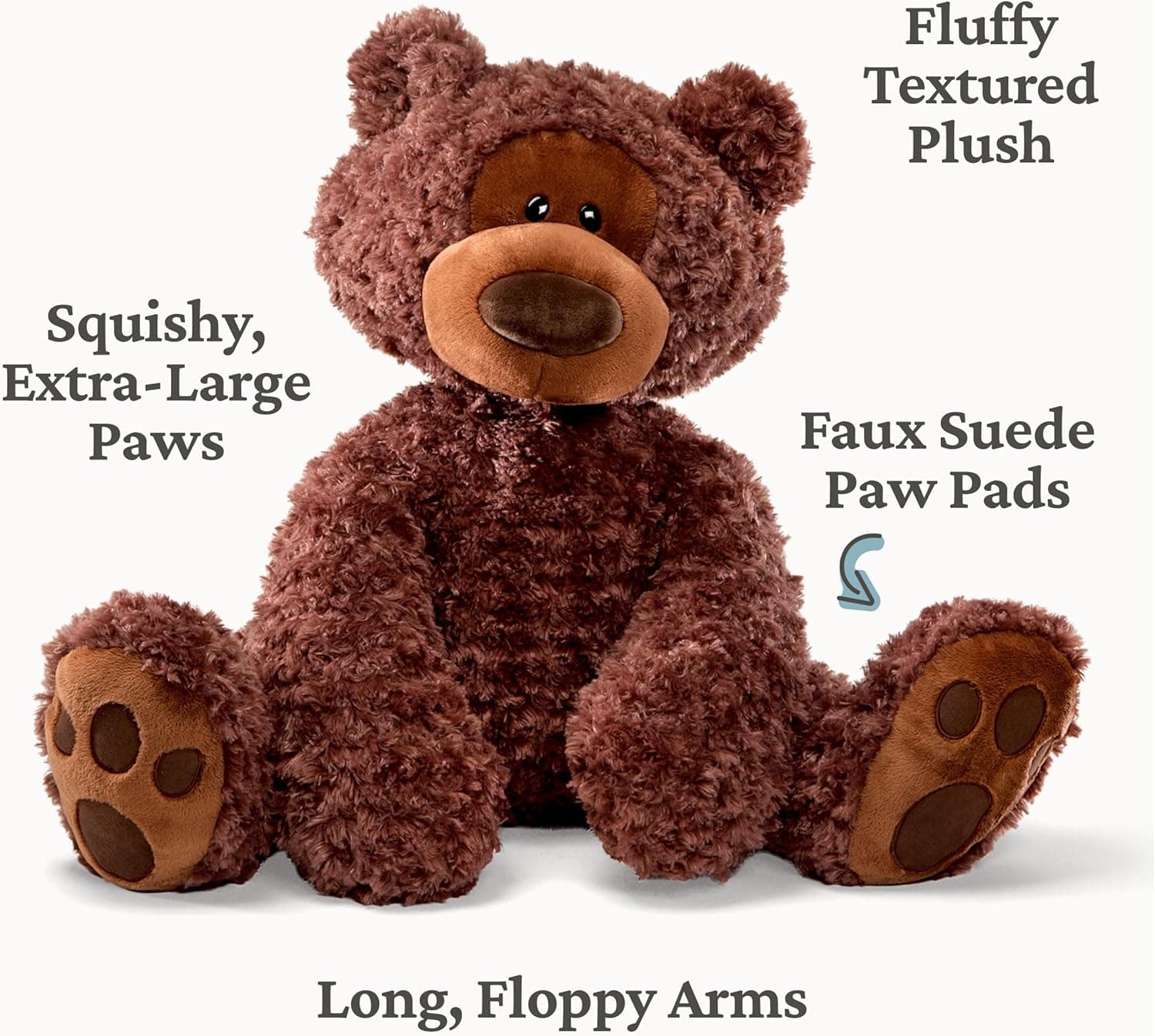 Philbin’s big paws mean even bigger hugs to share with friends! This classic chocolate brown, jumbo-sized 29" bear is designed with cute features such as oversized paws with faux suede paw pad accents and a curious expression that’s impossible not to love. His extra-large jumbo size makes him sized for cuddling and unique room decoration. Philbin also comes in beige and chocolate brown in smaller 12” and 18” sizes, cherished by every generation of cuddler. This sweet bear can’t wait to be your Forever Friend! Surface-washable. Appropriate for ages one and up. Ships in a protective poly bag. At the heart of GUND is our collection of stuffed animals and plush toys, including our vast array of cuddly teddy bears, bursting with unique personalities. Each plush is made with pride from super-soft, huggable materials that stay supple through the years. From established classic favorites to brand-new modern pals, there’s a GUND teddy bear plush buddy for everyone!