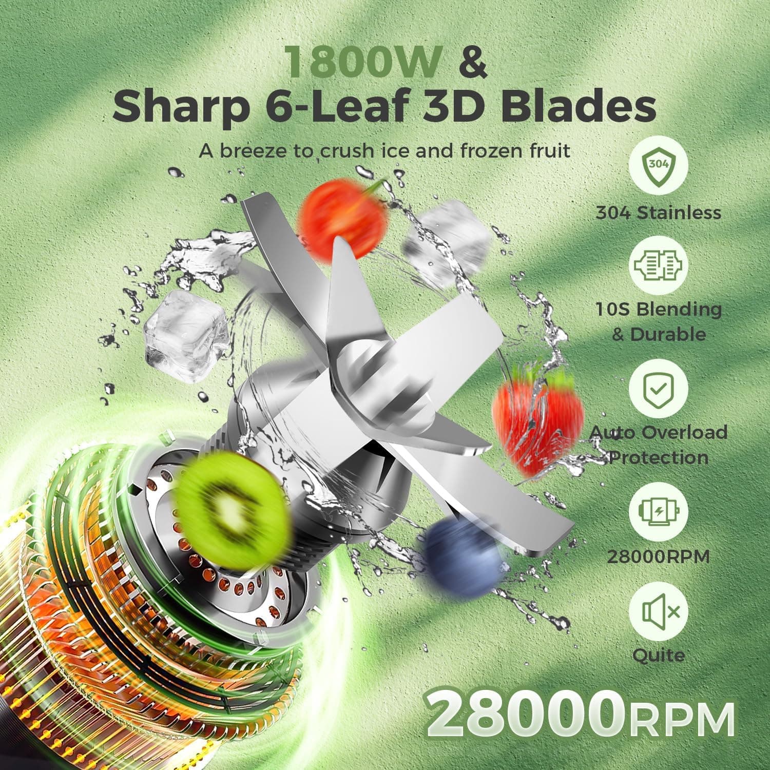 • Pro-Level Blending Power: Packing a punch with up to 1800 watts, this kitchen blender makes quick work of ice, frozen fruits, and tough ingredients, whipping up smoothies, shakes, and more like a pro.