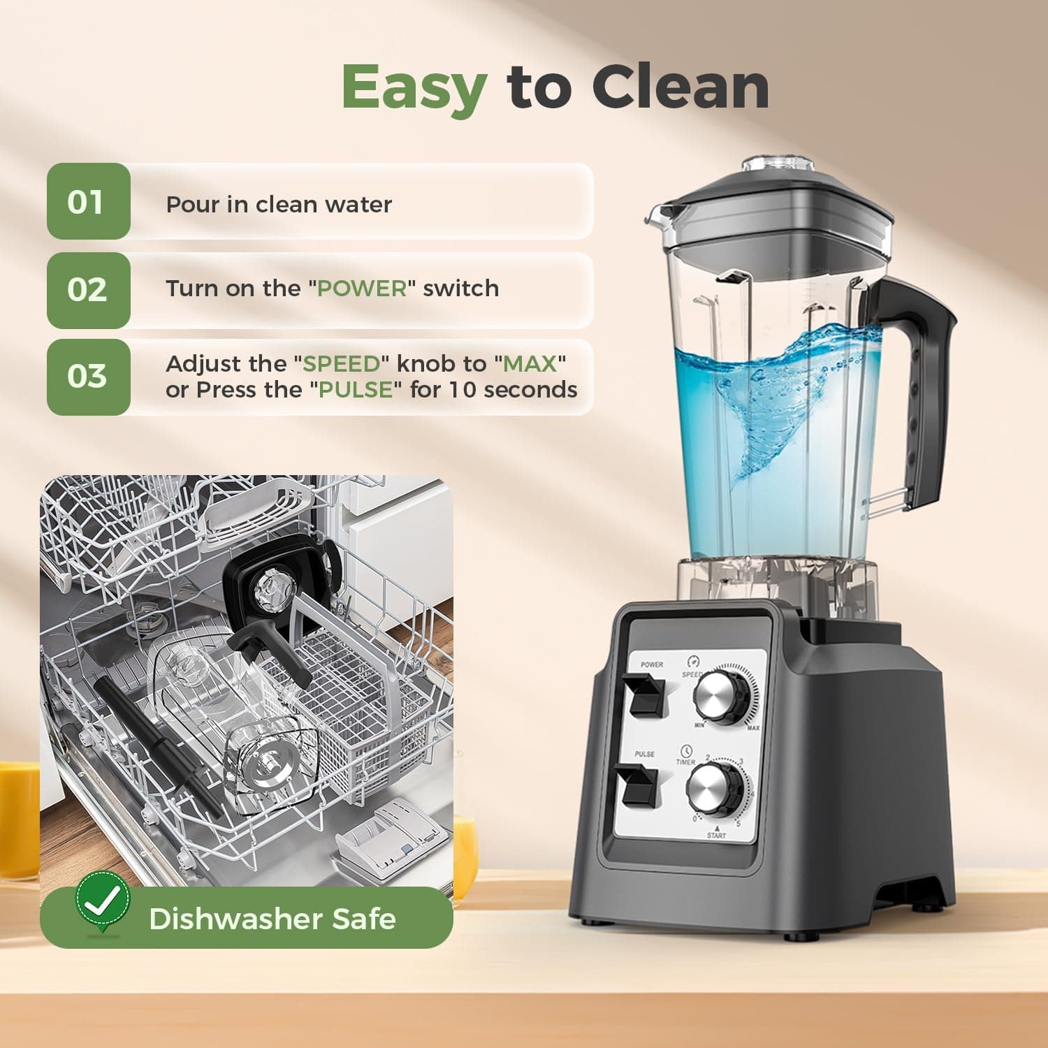 • Cleans Up in a Flash: The BPA-free pitcher, lids, and blades are dishwasher-safe, and the self-clean feature makes cleanup a breeze—just add soap and water, hit blend, and you’re done.