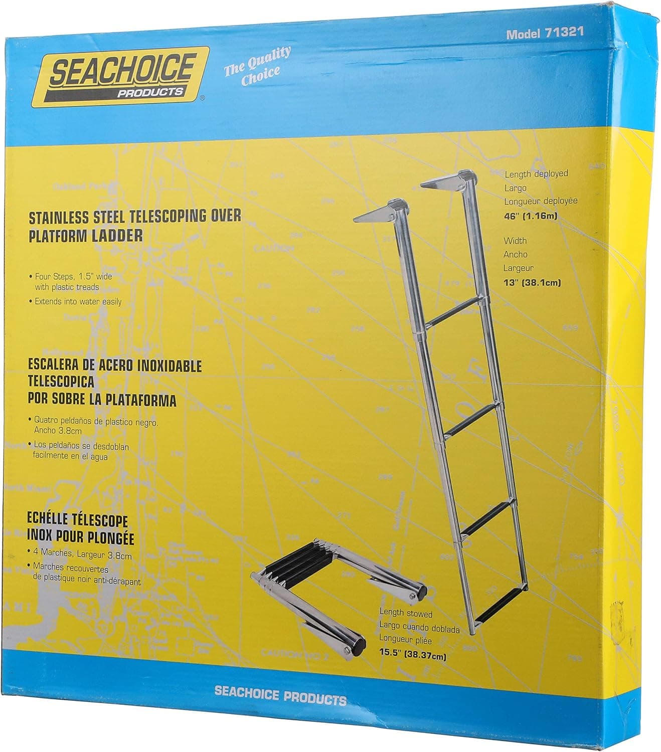 Seachoice Universal Swim Platforms With Top-Mount Telescoping Ladder are designed for both outboard and inboard/outboard applications. All stainless-steel hardware is included. Featuring a durable fiberglass platform and polished stainless-steel construction. Seachoice is committed to delivering quality marine accessories and OEM replacement parts to satisfy fishing, boating and watersports enthusiasts worldwide. Seachoice is run for and by boaters, offering a wide-ranging product line while remaining affordable.