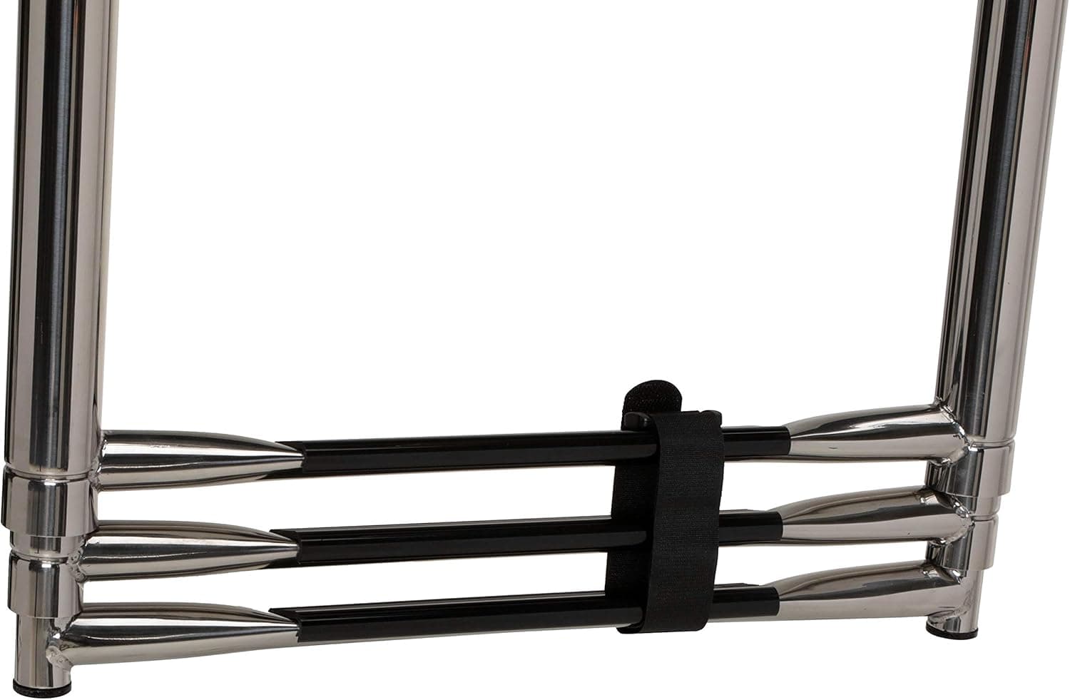 • Two-step telescoping ladder with non-slip steps can be secured with a Hook & Loop strap when in stowed position